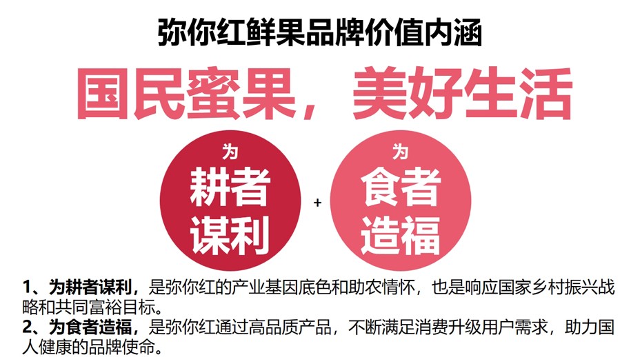 国民更亲民:用国民诠释第一,广告法无懈可击,互联网语言更容易被认可。生活甜蜜+:用甜蜜将生活的幸福感和弥你红的口味相串联,体验健康美妙的全新生活。